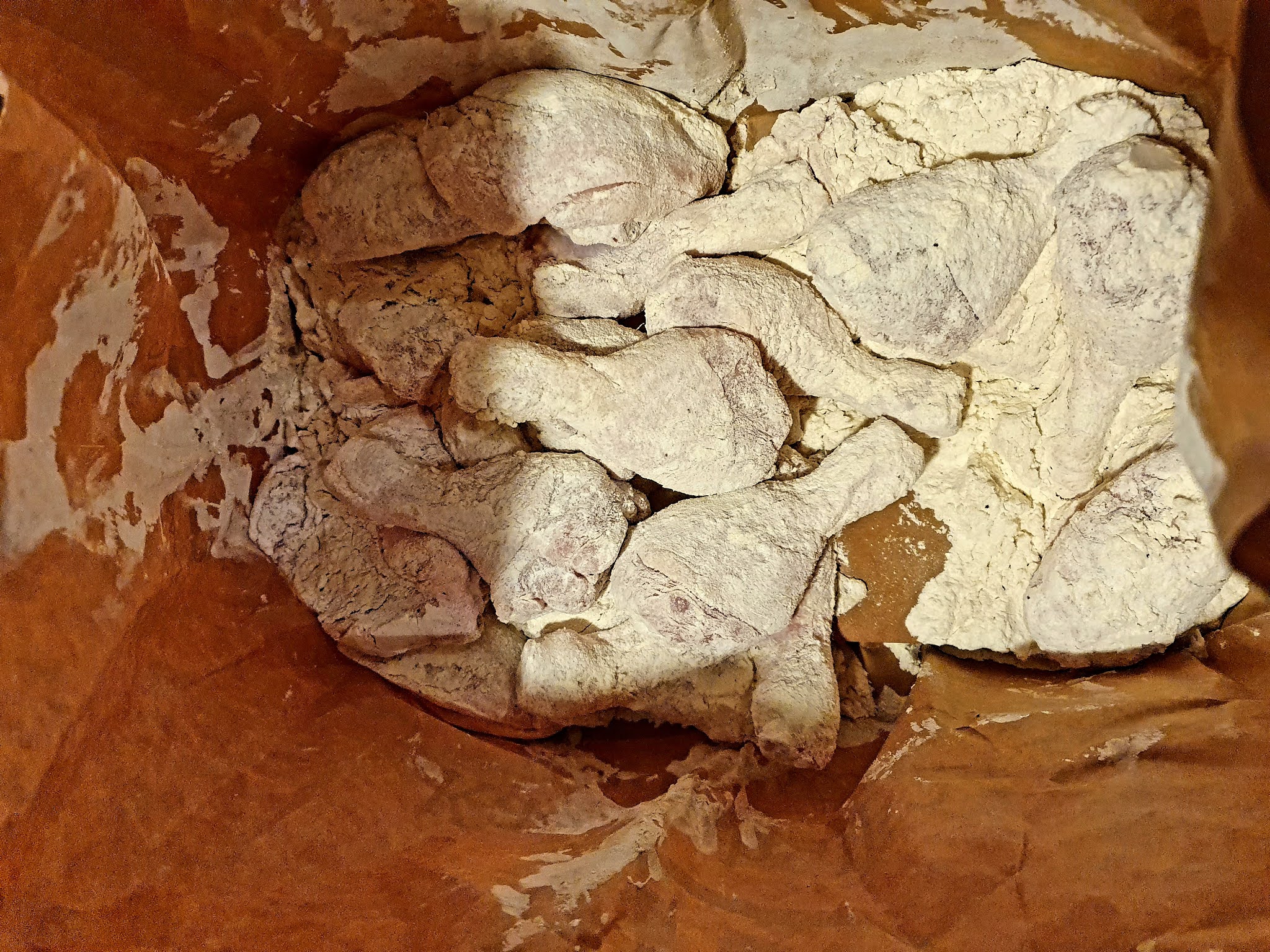 Kasta broileripalat maito-munaseokseen ja laita pussiin, jossa jauhoseos. Sulje pussi ja ravista kunnes kaikki kanapalat ovat leivittyneet.